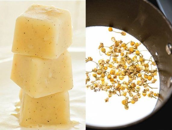 -Ανακάτεψε το μείγμα με το γάλα και το χαμομήλι, τοποθέτησέ το σε παγοθήκες και βάλε το απευθείας στην κατάψυξη.
