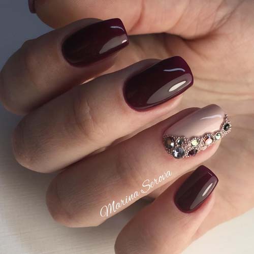 Τόσο το φθινόπωρο, όσο και τον Χειμώνα, οι σκούρες αποχρώσεις στα νύχια έχουν την τιμητική τους. Μπορείτε λοιπόν να επιλέξετε να βάψετε μονόχρωμα τα νύχια σας χρησιμοποιώντας ένα σκούρο χρώμα ή να κάνετε συνδυασμούς σκούρων αποχρώσεων. Εναλλακτικά, μπορείτε να βάψετε κάποια νύχια σκούρα και να δώσετε φως και λάμψη στο μανικιούρ σας με πινελιές ή και ένα ολόκληρο νύχι βαμμένο σε ανοιχτόχρωμους τόνους. Το glitter και τα τρισδιάστατα διακοσμητικά στοιχεία είναι επίσης μια πολύ ωραία ιδέα για να απογειώσετε τα σκούρα νύχια σας.