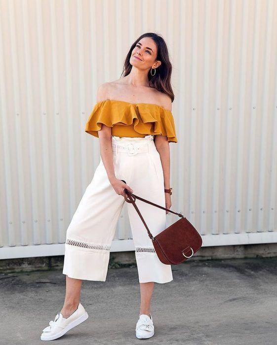 Κι αν έχει καύσωνα, μπορείς να βάλεις ένα μουσταρδί τοπ κι μια αεράτη παντελόνα που θα σε κρατήσει άνετη και δροσερή! Θα είσαι εντυπωσιακή και μοντέρνα και φυσικά όσο casual χρειάζεται, για μερικά…τρεξίματα που έχεις στο κέντρο της πόλης!