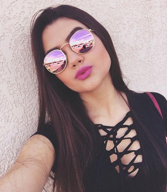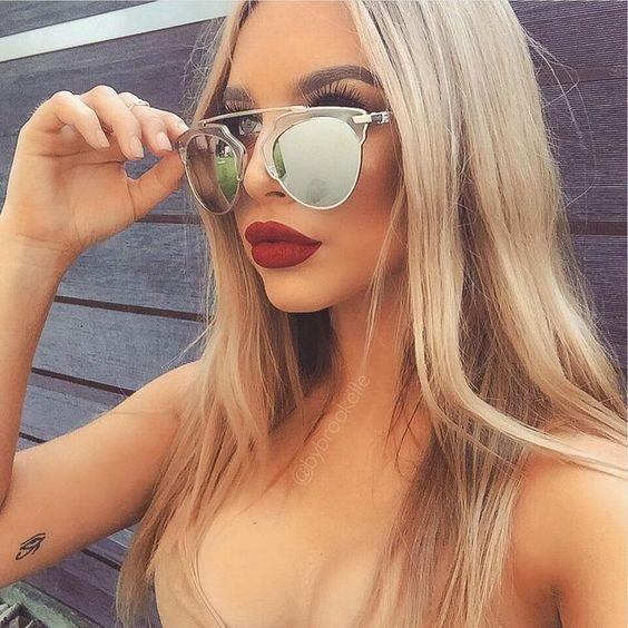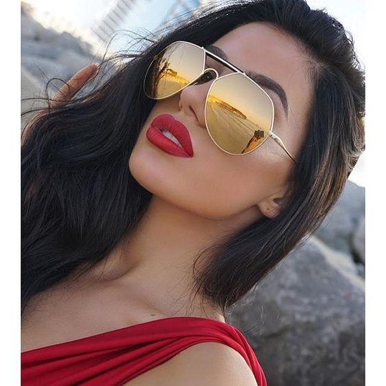 Στις μελαχρινές γυναίκες είναι γνωστό ότι ταιριάζουν γυαλιά ηλίου καθρέφτες. Αυτό, διότι το χρώμα των συγκεκριμένων γυαλιών δίνει την λάμψη που χρειάζεται το πρόσωπο μιας μελαχρινής κοπέλας. Έτσι επέλεξε το παρακάτω σχέδιο και ανέδειξε ακόμη περισσότερο, τα υπέροχα χρώματά σου.