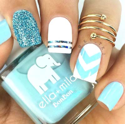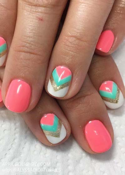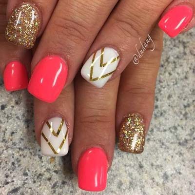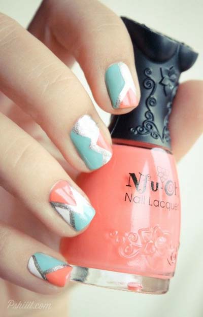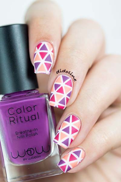 Εξίσου όμως περίτεχνα, αλλά και εύκολα είναι τα γεωμετρικά – γραμμικά σχέδια μανικιούρ. Παίξτε με τα χρώματα και τα σχήματα, δημιουργώντας νύχια που ξετρελαίνουν.
