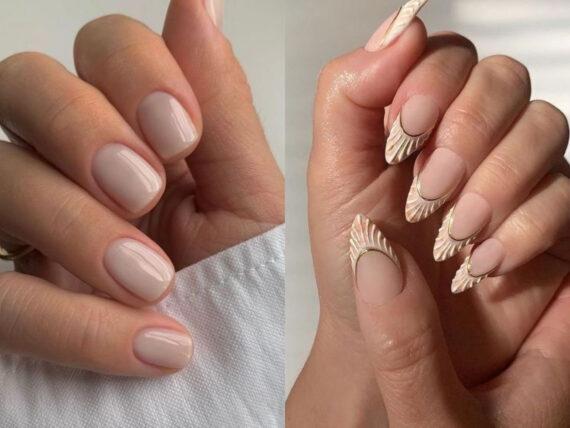 Ιδέες με nude νύχια το Καλοκαίρι 2023: Χρυσά και λευκά σχέδια