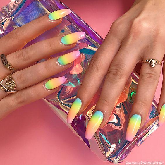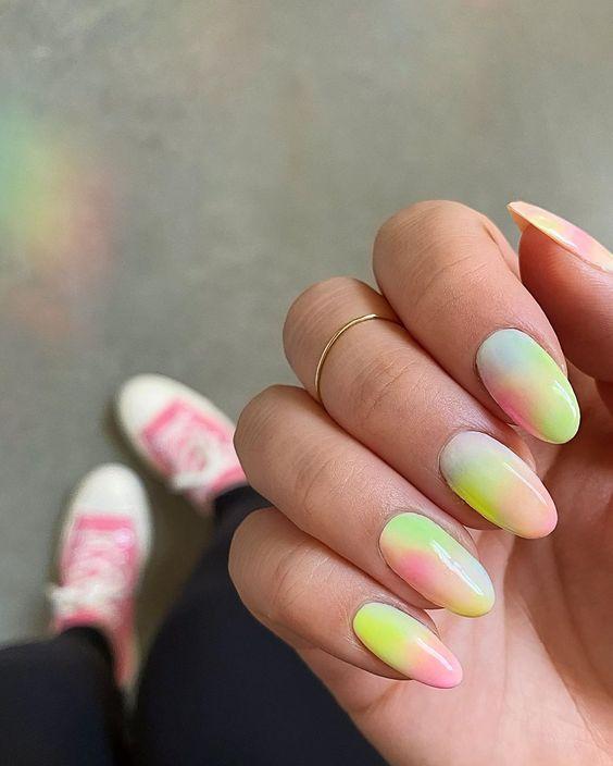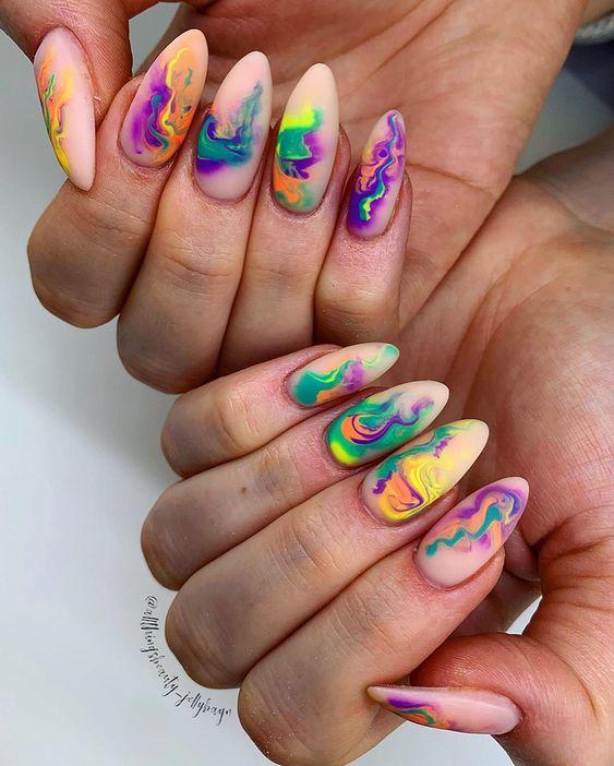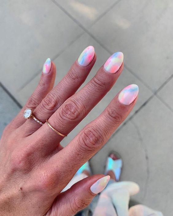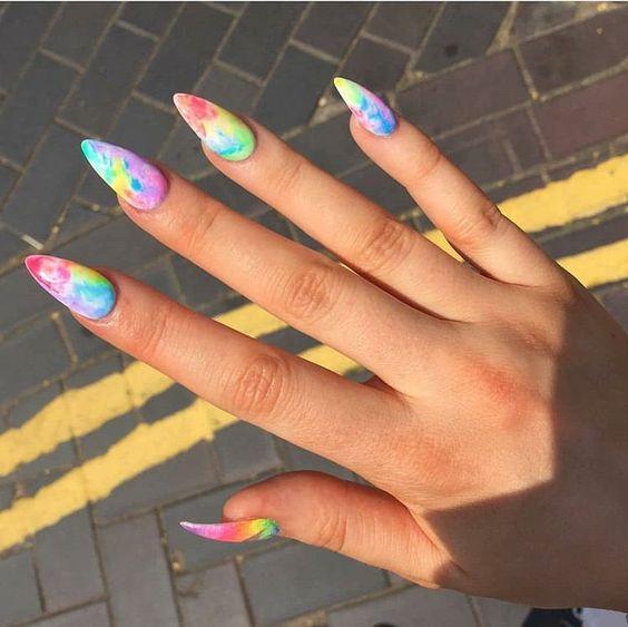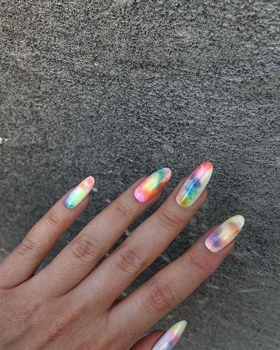 Στο tie dye μανικιούρ, μπορείς να παίξεις με όποιο χρώμα του…ουράνιου τόξου επιθυμείς! Είναι η αγαπημένη μας τάση στο μανικιούρ το Καλοκαίρι του 2020, διότι δεν μας δεσμεύει τόσο στα χρώματα όσο και στα σχέδια που θα επιλέξεις να κάνεις! Η παρακάτω εικόνα, είναι εντυπωσιακή: