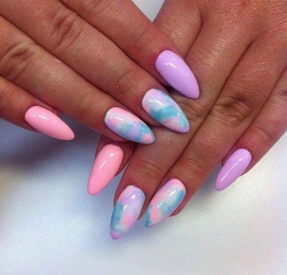 Κι αν θέλεις μια σικ και συνάμα girly επιλογή για το tie dye μανικιούρ σου, η παρακάτω εικόνα μπορεί να σε βοηθήσει να βρεις το σχέδιο που επιθυμείς! Το λευκό είναι η βάση του μανικιούρ, ενώ το ροζ, το θαλασσί και το μοβ, έρχονται να απογειώσουν την εικόνα και να προσθέσουν το χρώμα που χρειάζεται το μανικιούρ σου!