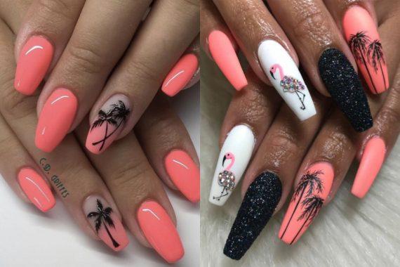 Κι αν θέλεις να γίνεις extreme, το παρακάτω μανικιούρ μπορεί και να σ’ αρέσει. Ροζ φλαμίνγκο που ακόμη είναι σήμα κατατεθέν για το ελληνικό Καλοκαίρι, φοίνικες, κοραλί αποχρώσεις και φυσικά μαύρο χρώμα με στρας, για να κάνει το μανικιούρ πιο βραδινό!