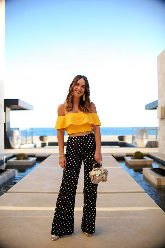 Ένα υπέροχο ντύσιμο για μια βραδινή έξοδο είναι το παρακάτω. Εκπληκτικό μουσταρδί γυναικείο τοπ με μια μαύρη πουά παντελόνα. Δεν θέλεις σαν τρελή να κάνεις δικό σου το παρακάτω outfit; Γιατί εμείς ήδη το…ληγουρευόμαστε.