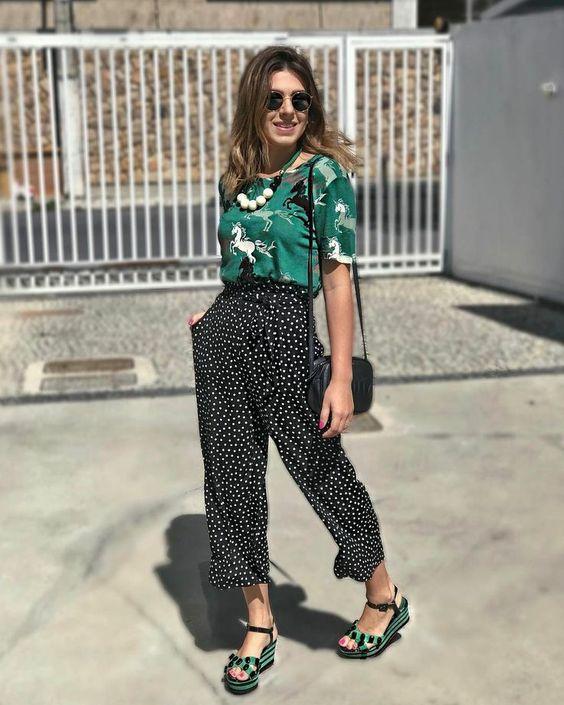 Μη φοβηθείς να συνδυάσεις το πουά σου παντελόνι με το φλοράλ πουκάμισο σου. Μπορεί να σου φαίνεται υπερβολικό, όμως η κοπέλα της φωτογραφίας αποδεικνύει ότι αν παίξεις σε safe χρωματισμούς, το αποτέλεσμα είναι ιδιαίτερο και σικ ταυτοχρόνως.