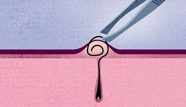 Μόλις η τρίχα είναι αισθητή πάνω από το δέρμα, χρησιμοποιήστε ένα αποστειρωμένο τσιμπιδάκι για να την τραβήξετε απαλά προς τα πάνω, χωρίς να την κόψετε. Μπορείτε επίσης να βοηθήσετε την κίνηση με μια οδοντογλυφίδα.