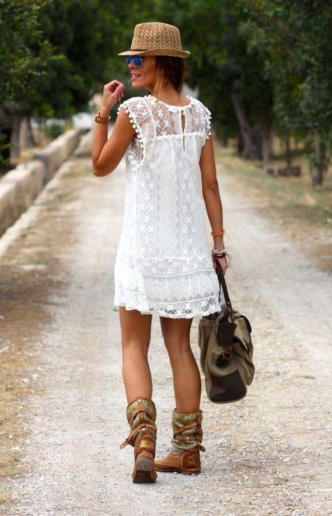 Ένα υπέροχο φόρεμα με κρόσσια και δαντέλα μπορεί να σταθεί τόσο σε μια boho εμφάνιση σου (με τα σωστά αξεσουάρ) τόσο σε μια επίσημη και βραδινή έξοδο. Τίποτα πιο καλοκαιρινό από τα κρόσσια και τις δαντέλες και τίποτα πιο δροσερό και ανάλαφρο από το λευκό χρώμα.