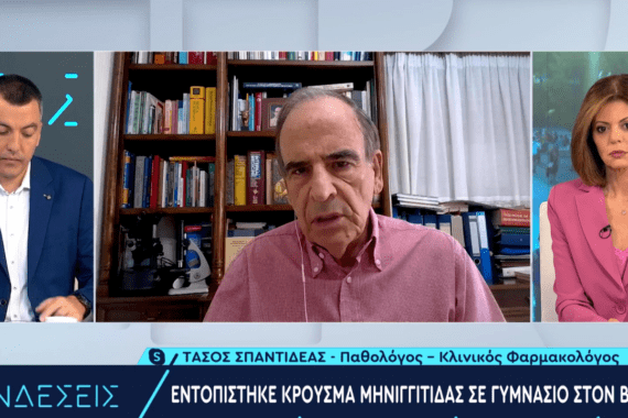 Ο παθολόγος-κλινικός φαρμακολόγος, Τάσος Σπαντιδέας, μίλησε στην Χριστίνα Βίδου και Κώστα Παπαχλιμίντζο στην εκπομπή ΣΥΝΔΕΣΕΙΣ του ΕΡΤNews για τα προειδοποιητικά συμπτώματα που πρέπει να προσέχουν οι γονείς σχετικά με το περιστατικό μηνιγγίτιδας σε γυμνάσιο στον Βύρωνα.