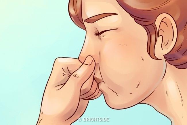 - Πιάστε τη μύτη σας με τον αντίχειρα και το δείκτη, κλείνοντας το στόμα και τα μάτια σας.