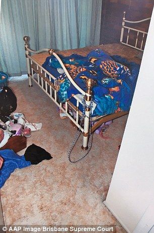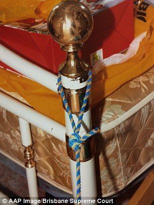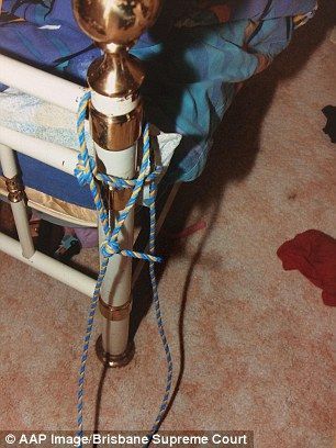 Στις φωτογραφίες αυτές παρατηρείτε το σχοινί που λέγεται οτι είχε δεμένη τη μικρή Kyhesha-Lee Joughin ο ”πατέρας” της , προκειμένου να μην φύγει από το δωμάτιο…