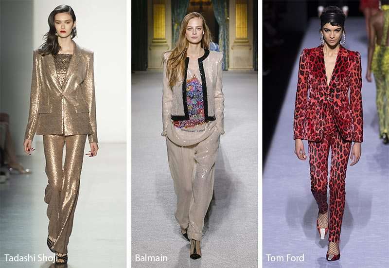 Κοστούμια: είναι από τις μεγάλες αλλαγές στη μόδα γιατί τα υφάσματα τους όπως και τα χρώματα, είναι πλέον ιδανικά και για τις βραδινές μας εξόδους. Οι γραμμές μπορεί να είναι straight αλλά είναι και πιο φαρδιές ή άνετες. Εντυπωσιακό το animal printed κοστούμι του Tom Ford. Το είπαμε ότι φέτος τα λεοπάρ θα πολυφορεθούν… και αυτό το σύνολο είναι το πρώτο που θα διαλέγαμε για τη νέα σεζόν.
