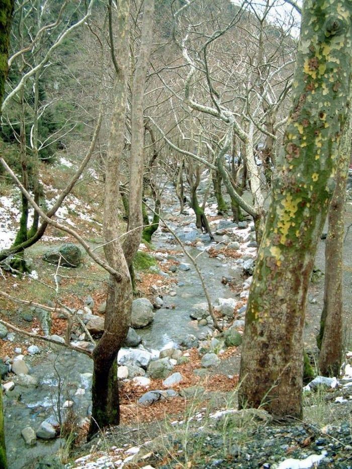 Από δω και πάνω ο δρόμος χώνεται μέσα στο πυκνό δάσος της Στενής, που αποτελείται από μικτή βλάστηση: δίπλα στο ποταμάκι κυριαρχούν τα πλατάνια, ψηλότερα όμως τη σκυτάλη παίρνουν οι καστανιές και τα έλατα.