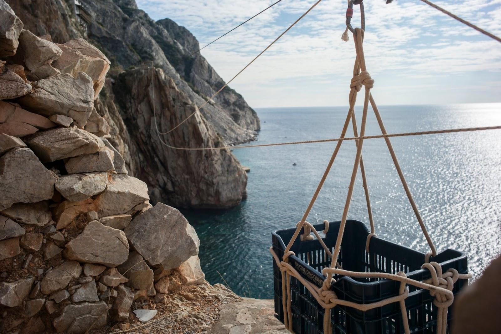 Στα Καρούλια οι ασκητές ζουν σαν τα πουλιά. Μένουν σε αυτοσχέδια σπίτια στην άκρη των γκρεμών, δεν καλλιεργούν και δεν αποθηκεύουν τίποτα, και τρέφονται με ό,τι βρουν – ό,τι τους στείλει ο Θεός.