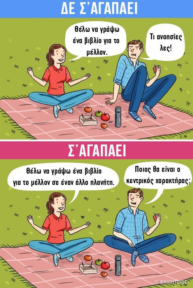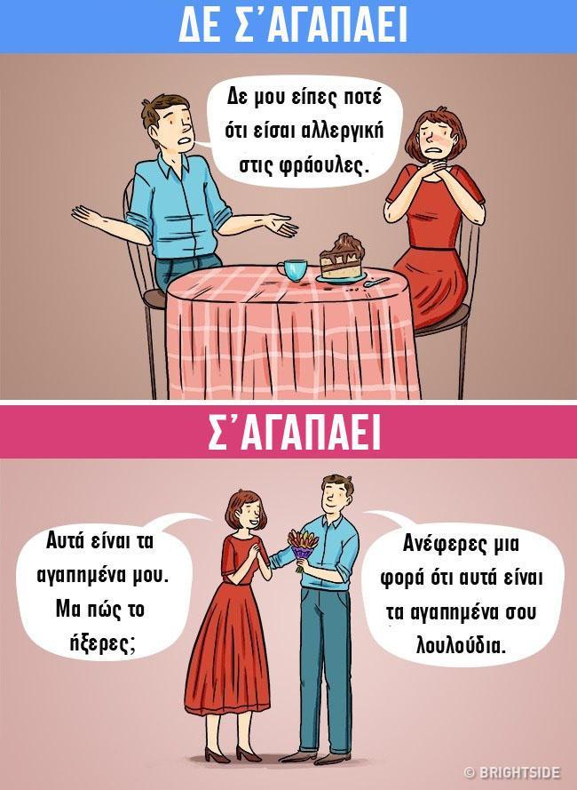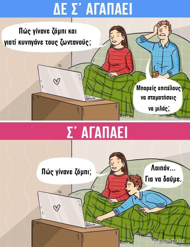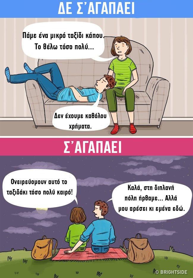 Υπάρχουν όμως κάποιες σχέσεις που βλέπεις πόσο αληθινά ερωτευμένο είναι το ζευγάρι! Είναι εκείνες που τις χαζεύεις και τις ζηλεύεις και χαμογελάς ασυναίσθητα γιατί απλά στο βγάζουν. Εκεί μιλάμε για πραγματική αγάπη. Και αν δεν ξέρεις αν η σχέση σου διακρίνεται από αυτήν, ή έχεις τις αμφιβολίες σου μπορείς μέσα από τα παρακάτω σκίτσα να σιγουρευτείς!