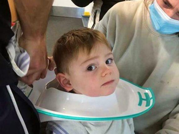 Παρόλα αυτά έφτασαν γρήγορα στο σημείο και με μία γρήγορη και εύκολη διαδικασία αφαίρεσαν το καθισματάκι από τον λαιμό του παιδιού. Αξίζει να σημειωθεί ότι ο 2χρονος δεν σταμάτησε να γελάει σε όλη την διαδικασία.