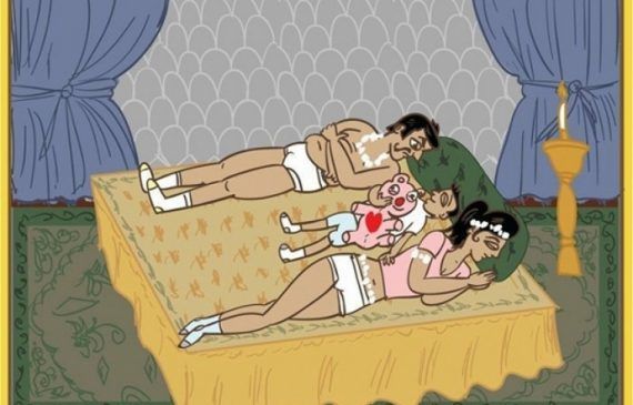 Όταν το ζευγάρι μένει επιτέλους μόνο του. Τα πιτσουνάκια ξεκινούν τα πειράγματα, τα φιλάκια και……ξαφνικά μπαίνει ο μπόμπιρας μέσα γιατί κάτι είδε στον ύπνο του και φοβήθηκε ή άκουσε κάποιο θόρυβο κτλ κτλ κτλ, θέλει να κοιμηθεί μαζί τους και θρονιάζεται στη μέση.