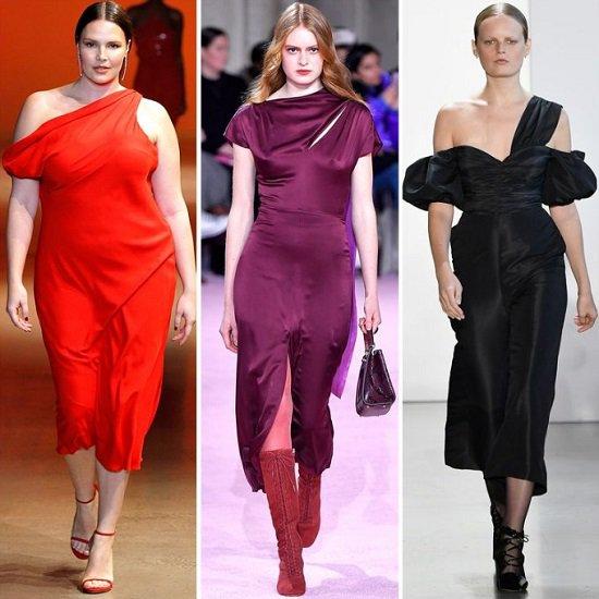 Ένα τέτοιου στυλ ρούχο μπορεί να είναι αρκετά αποκαλυπτικό, όπως είναι το μοβ φόρεμα της εταιρείας Moschino, αλλά και αρκετά κομψό και φινετσάτο, όπως είναι το χρυσό φόρεμα του Roberto Cavalli.