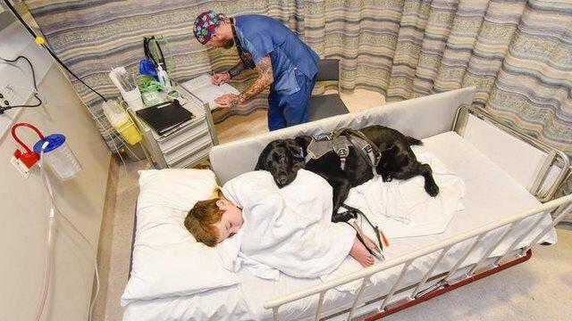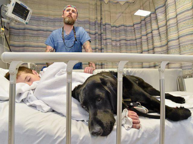 Δακρύσαμε από συγκίνηση: Το Λαμπραντόρ που δεν εγκαταλείπει το παιδί με αυτισμό ούτε στο νοσοκομείο! (φώτο)