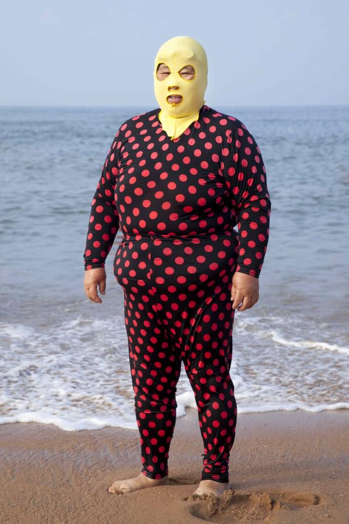 Φέρνει στον νου το ντιζάιν για παραλία που θα μπορούσε να είχε κάνει ο Λι Μπάουερι. Πλήρης καλύπτρα της κεφαλής που προστατεύει τον κολυμβητή από τις βλαβερές ακτίνες του ήλιου και από το να τον τσιμπήσουν οι γιγάντιες μέδουσες που ελλοχεύουν στις κινεζικές θάλασσες. Προστατεύει επίσης από έντομα κι από την άμμο που μπορεί να σηκώσει ο αέρας. Είναι από λύκρα ή ελαστικό και έχει τρύπες για μάτια, μύτη, στόμα.