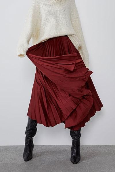 Οι μακριές φούστες και κυρίως οι πλισέ ή οι σατέν αποτελούν τις κυρίαρχες επιλογές της σεζόν. Δεν θα μπορούσαν λοιπόν να λείπουν από τη νέα collection ZARA Φθινόπωρο / Χειμώνας 2019 – 2020.