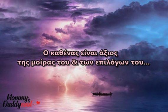 Πως μπορεί λοιπόν να φταίει η μοίρα; Πως γίνεται να είναι θέμα τύχης το ότι δεν καταφέραμε αυτά που θέλαμε στη ζωή μας και γίναμε δυστυχισμένοι; Όχι φίλε μου…δεν φταίει η μοίρα. Ο μόνος υπεύθυνος είναι ο εαυτός μας και οι επιλογές που κάναμε τόσα χρόνια που μας οδήγησαν σε αυτό το σημείο.