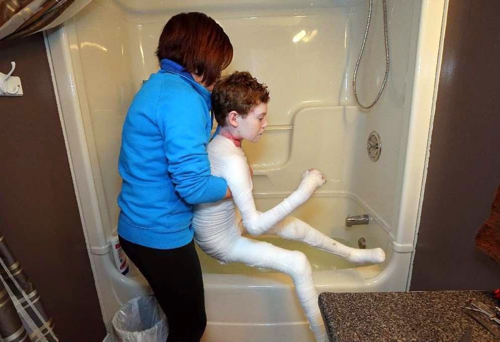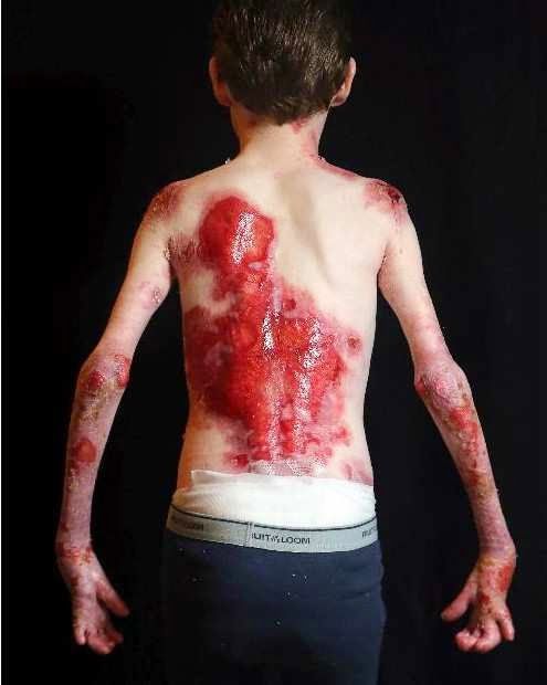 Το δέρμα του μικρού είναι απίστευτα εύθραυστο και χρειάζεται ειδική φροντίδα σε μόνιμη βάση για όλη του τη ζωή! Δε μπορούν να τον σηκώσουν εύκολα αγκαλιά, να του σφίξουν το χέρι πόσο μάλλον να παίξει όπως όλα τα παιδιά. Το παραμικρό χτύπημα είναι τόσο επώδυνο σα να έχει πέσει από ποδήλατο και να έχει χτυπήσει άσχημα με αιμορραγία. Ακόμα και το μπάνιο, του δημιουργεί πόνους, γιατί είναι σα να έχει μόνιμα ανοιχτές πληγές και να μπαίνει κάτω από το νερό.