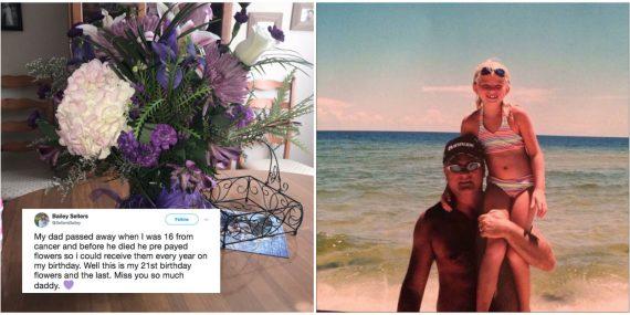 Περίπου ένα μήνα πριν από τα 17α γενέθλιά της , η Bailey από το Τενεσί τώρα είναι 21, έχασε τον πατέρα της από καρκίνο, σύμφωνα με την Buzzfeed . Χωρίς να έχει ιδέα, ο πατέρας της της είχε ένα ξεχωριστό δώρο, είχε προγραμματίσει για τα επόμενα 5 γενέθλια της να της στέλνεται – ένα μπουκέτο λουλουδιών.