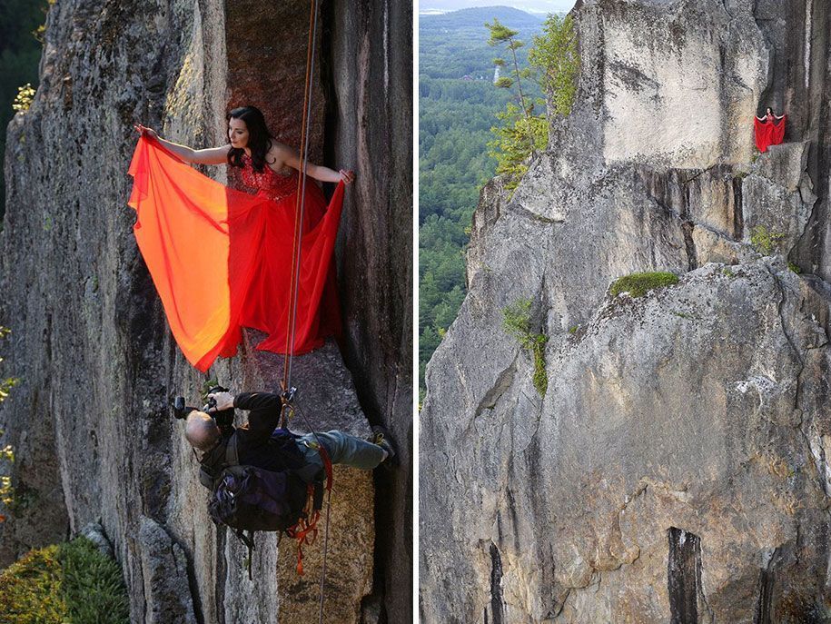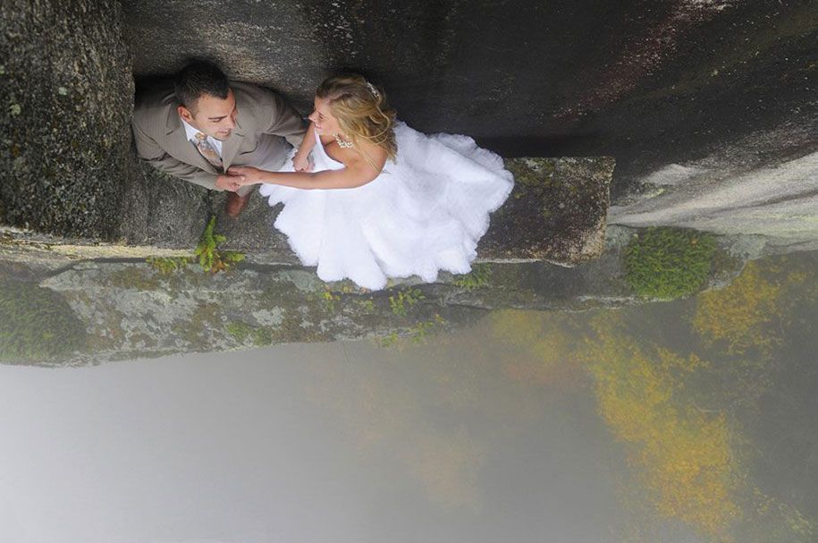 Φανταστείτε την νύφη και τον γαμπρό να ανεβαίνουν σε βράχο ύψους 200 μέτρων στο Νιου Χάμσαϊρ και στην συνέχεια να κατεβαίνουν σε έναν στενό χώρο ύψους 100 μέτρων για να τραβήξουν αυτές τις μοναδικές φωτογραφίες.