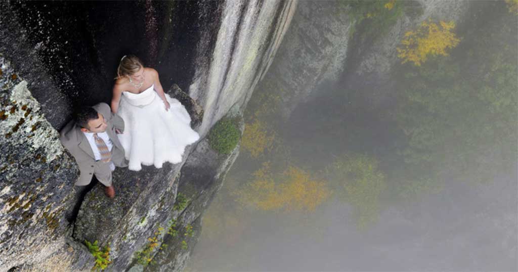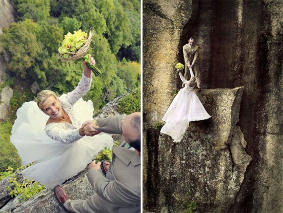 “Ο γάμος είναι σαν πηδάς από έναν βράχο”, λένε μερικοί, αλλά τα παρακάτω ζευγάρια αποφάσισαν να κάνουν την φράση αυτή πράξη και βγάλουν τις γαμήλιες φωτογραφίες τους πάνω σε έναν βράχο 100 μέτρων.