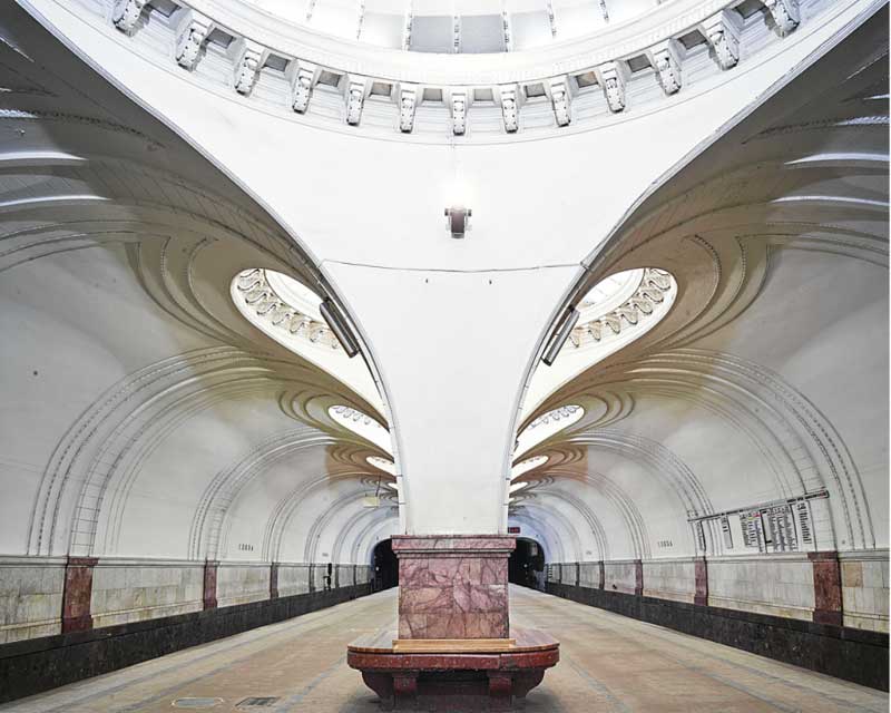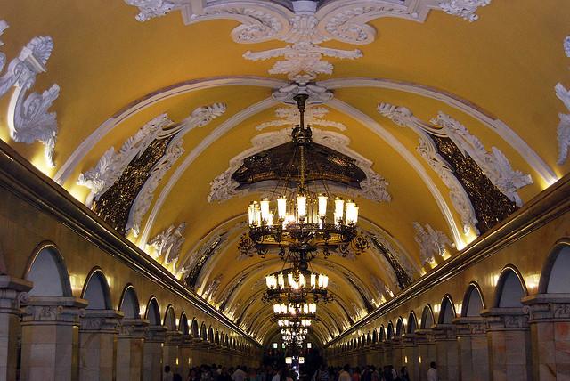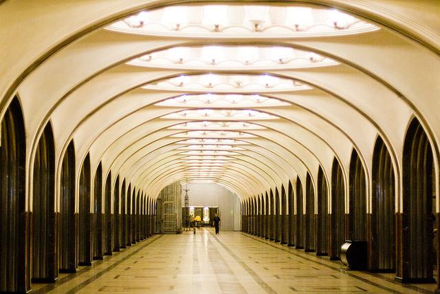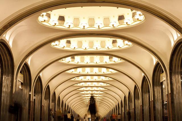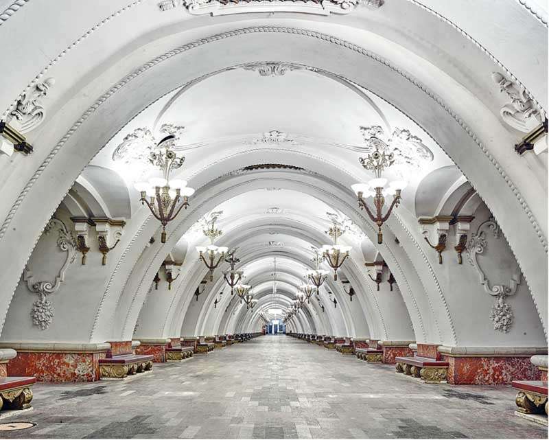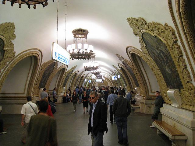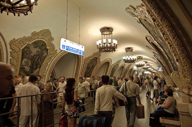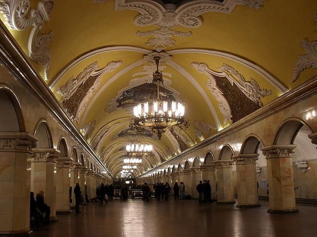 Το μετρό της Μόσχας λειτούργησε για πρώτη φορά το 1935 και σήμερα αριθμεί πάνω από 250 σταθμούς και περισσότερα από 400 χιλιόμετρα γραμμών. Οι πρώτοι σταθμοί σχεδιάστηκαν σαν «υπόγεια παλάτια», με μάρμαρα, αγάλματα, ψηφιδωτά και πολυελαίους, δημιουργώντας μια μοναδική αίσθηση πολυτέλειας.