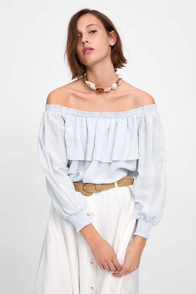 Οι κορυφαίες διακοσμητικές λεπτομέρειες στις μπλούζες ZARA είναι η δαντέλα, τα βολάν και τα κρόσσια, ενώ τα prints που θα κάνουν αισθητή την παρουσία τους είναι το φλοράλ, το λαχούρι και το πουά. Εξίσου δημοφιλές για την περίοδο αυτή θα είναι βέβαια και το ριγέ μοτίβο!