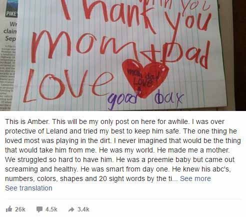 Ηταν το φως στις ζωές μας και το κέντρο αυτής της οικογένειας, γράφει η μητέρα του στο Facebook. » Μετράω τις μέρες μέχρι να ξαναδω το γλυκό του πρόσωπο και να ξανακούσω τη γλυκεία φωνή του.»