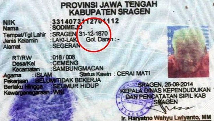 Σύμφωνα με τη Daily Mail, το ληξιαρχείο της Ινδονησίας επιβεβαιώνει την ημερομηνία γέννησης του Mbah αλλά παραμένει άγνωστο αν θα αναγνωριστεί επισήμως ως ο γηραιότερος εν ζωή άνθρωπος στον κόσμο καθώς δεν έχει υπάρξει μέχρι στιγμής επιβεβαίωση των εγγράφων από ανεξάρτητη πηγή.