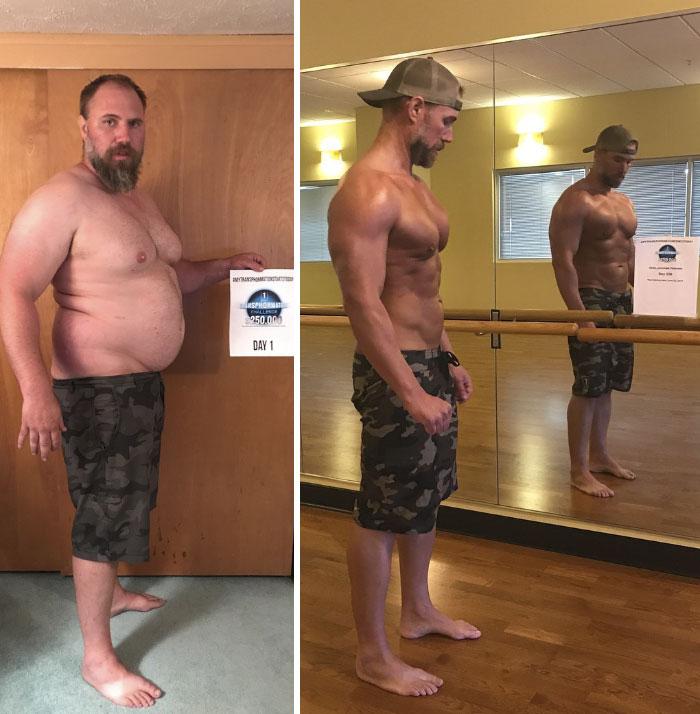 Συνδυάζοντας μια αυστηρή δίαιτα keto και έντονη τακτική άσκηση, ο 33χρονος άρχισε να μεταμορφώνεται. «Μην φοβάστε, μην κρύβεστε. Μη διστάζετε να βλέπετε το λίπος σας και σκεφτείτε πραγματικά ποιος θέλετε να κερδίσει». Επί 6 μήνες έκανε καθημερινά δύο ώρες πεζοπορία και μία ώρα στο γυμναστήριο. Κατάφερε μάλιστα να χάσει 38 κιλά.