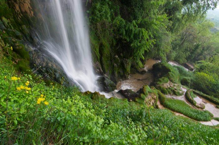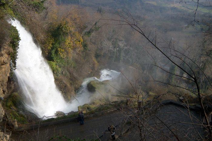Έπειτα, κατεβαίνοντας σε χαμηλότερο επίπεδο, και πατώντας πολύ προσεκτικά στα σκαλοπάτια, γιατί τα νερά τα καθιστούν πολύ γλιστερά, θα φτάσεις σε άλλο έναν καταρράκτη· ή μήπως σε δύο;