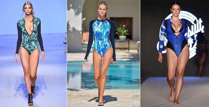 Για τους λάτρεις των θαλάσσιων σπορ και όχι μόνο η μόδα της σεζόν παρουσιάζει μια σειρά από ολόσωμα μακρυμάνικα κυρίως μαγιό σε μονόχρωμα, αλλά και printed σχέδια.