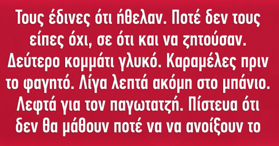 Τους έδινες ότι ήθελαν. Ποτέ δεν τους είπες όχι, σε ότι και να ζητούσαν.