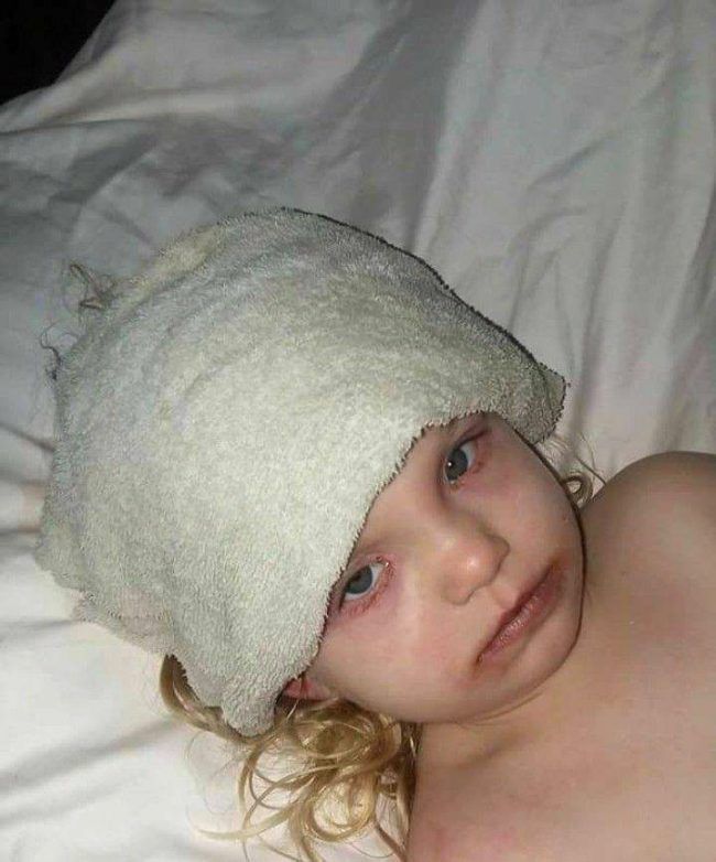 Το πρόσωπο του μικρού κοριτσιού κοκκίνισε, πρήστηκε και άρχισε να βγάζει φουσκάλες γεμάτες υγρό.