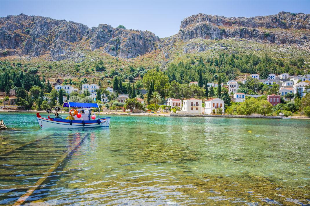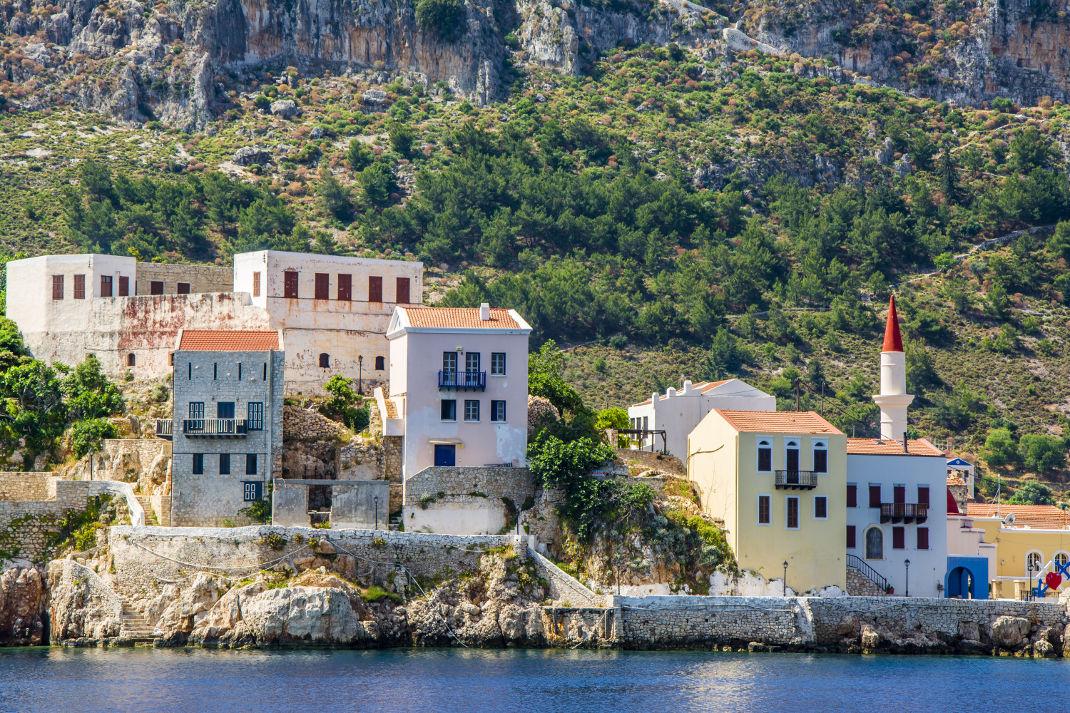 Η πρώτη επαφή με το νησί μοιάζει με ένα ταξίδι στα χρώματα. Τα αναστηλωμένα, κομψά αρχοντικά, σπάνιο δείγμα της αυθεντικής δωδεκανησιακής αρχιτεκτονικής, που του χαρίζουν γραφικό ύφος «σκαρφαλώνουν» στους βράχους. Είναι ένας μοναδικός οικισμός γύρω από το φυσικό λιμάνι, που περιλαμβάνει τις συνοικίες Πηγάδια, Χωράφια και Μανδράκι, οι οποίες μαγεύουν το φωτογραφικό φακό με την ομοιομορφία της κατασκευής τους.