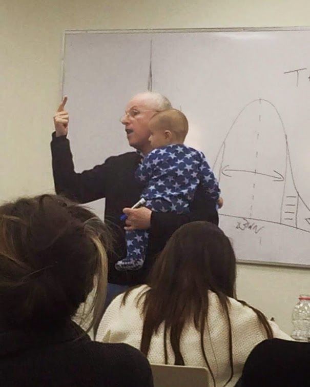 Οι περισσότεροι καθηγητές που θα βρίσκονταν στη θέση του, θα παρακαλούσαν τη μητέρα να απομακρύνει το παιδί της από την αίθουσα, για να συνεχίσουν απερίσκεπτοι την διάλεξη τους. Ο Engelberg όμως έκανε κάτι πολύ διαφορετικό. Όταν είδε την αμήχανη φοιτήτρια και μητέρα να σηκώνεται για να βγει από την αίθουσα, την πλησίασε, πήρε στην αγκαλιά του το παιδί της και απλά.. συνέχισε την διάλεξη του! Υπέροχος άνθρωπος!