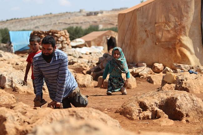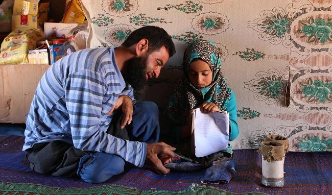 Η οικογένεια εγκατέλειψε το Χαλέπι για να αποφύγει τις βομβιστικές επιθέσεις και τοποθετήθηκε στο στρατόπεδο συγκέντρωσης στο Idlib.