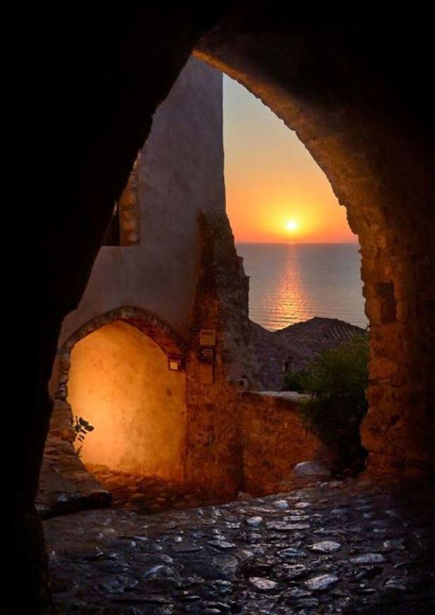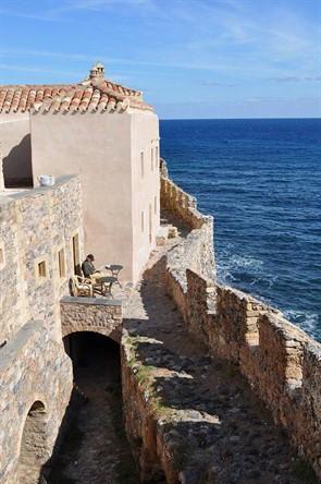 Το “πέτρινο καράβι” του Ρίτσου δεν θα σε δυσκολέψει. Μπαίνοντας από την μοναδική είσοδο αρχίζει το ταξίδι στο παρελθόν, που φτάνει ως τον 6ο αιώνα. Χωρίς αυτοκίνητα, με μόνους ήχους τον παφλασμό των κυμάτων που χαϊδεύουν τα αδιαπέραστα τείχη και τους συνωμοτικούς ψιθύρους των ερωτευμένων. Και ο αέρας του Μυρτώου να ανακατεύει πότε πότε τα μαλλιά.