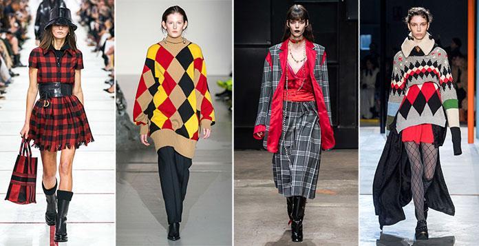 Πέρα όμως από τα κλασσικά αυτά τετράγωνα, χαρακτηριστικό print για την περίοδο είναι και οι ρόμβοι. Τους έχουμε δει πολλές φορές να κοσμούν τα γυναικεία πουλόβερ, αλλά και τις φθινοπωρινές – χειμωνιάτικες μπλούζες.