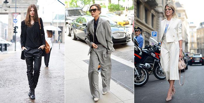 Τα κομψά και business look γυναικεία κοστούμια που παρουσιάστηκαν από τους διάσημους οίκους μόδας γι’ αυτή τη σεζόν αποπνέουν μια πιο άνετη και χαλαρή διάθεση. Συνοδεύονται από τα τοπ για την εποχή φαρδιά παντελόνια. Έτσι, τα αυστηρά, στενά και εφαρμοστά κομμάτια δίνουν δυναμικά την θέση τους σε πιο ανάλαφρα στυλ ντυσίματος για το γραφείο και όχι μόνο.