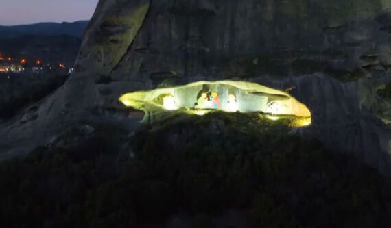 Το μάτι του Θεού | Η εντυπωσιακή φάτνη των Μετεώρων Στην τεράστια σπηλιά που μοιάζει με «μάτι του Θεού», τοποθετήθηκαν φιγούρες της Παναγίας, του Χριστού, των μάγων κ.λπ., ενώ ένα τεράστιο άστρο δεσπόζει από πάνω της. Η τοποθεσία και η φωταγώγησή της, μαγνητίζουν ακόμα περισσότερο το ενδιαφέρον του επισκέπτη και αποτελεί κέντρο αναφοράς για την περιοχή των Μετεώρων σύμφωνα με το eretikos.gr .