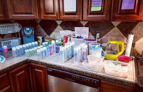 Τα εβδομαδιαία ψώνια περιλαμβάνουν δεκάδες βαζάκια βρεφικής τροφής και μέχρι πρότινος η οικογένεια χρειαζόταν να ετοιμάσει περίπου 40 μπουκάλια γάλα για να ταΐζει τα πεντάδυμα.