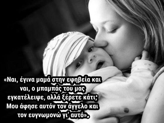 «Είμαι έφηβη μαμά και ποτέ μου δεν θα μετανιώσω το ότι απέκτησα τον γιο μου, αλλά μετανιώνω το πόσο γρήγορα χρειάστηκε να μεγαλώσω η ίδια».