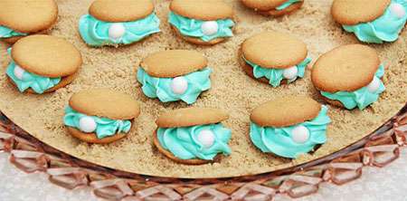 Διακοσμήστε τα μπισκότα με ζαχαρόπαστα και κονφετί ζαχαροπλαστικής για να τα μετατρέψετε σε φαγώσιμες σαγιονάρες.